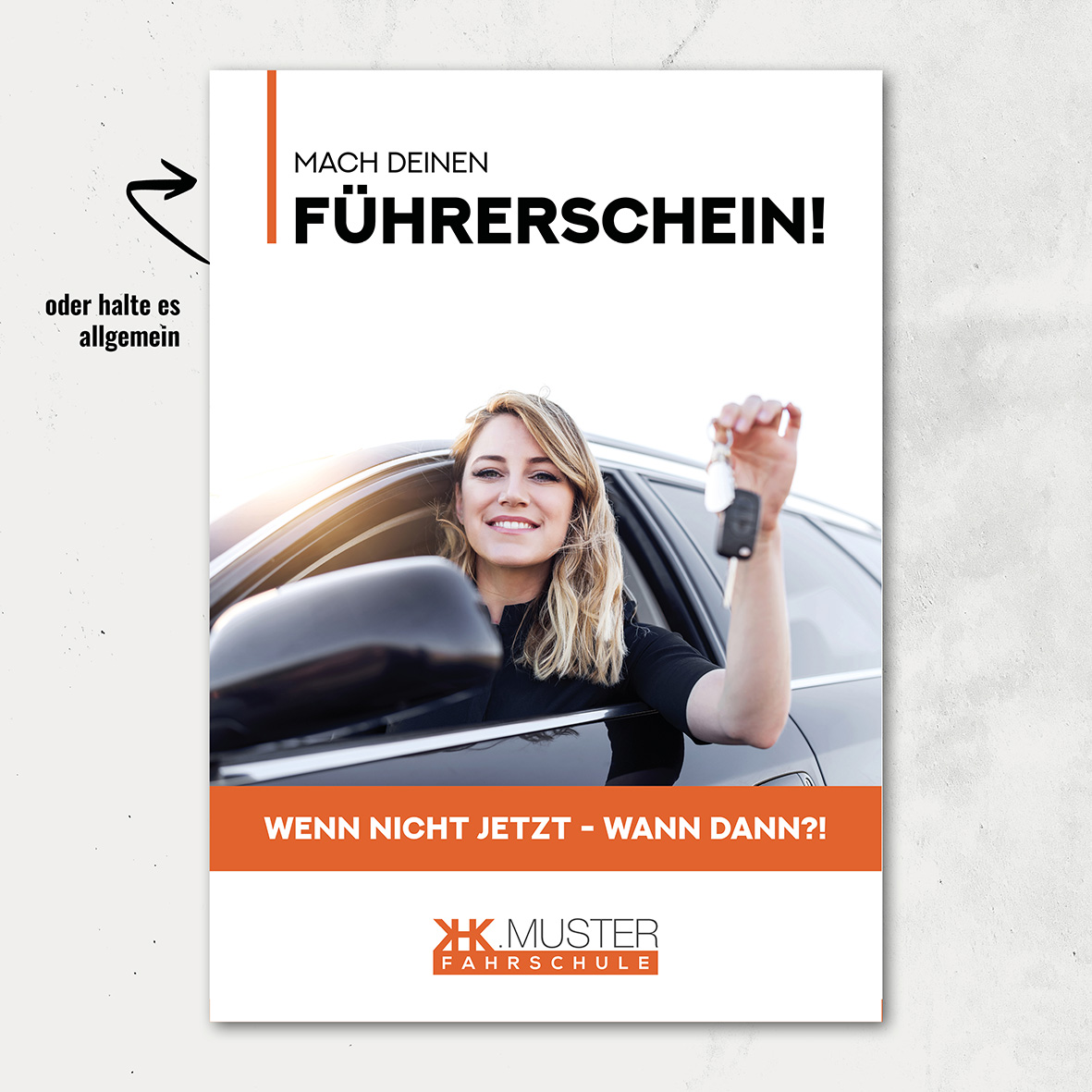 Du hast die Möglichkeit, Gestaltungen speziel für deine Fahrschule in Auftrag zu geben.